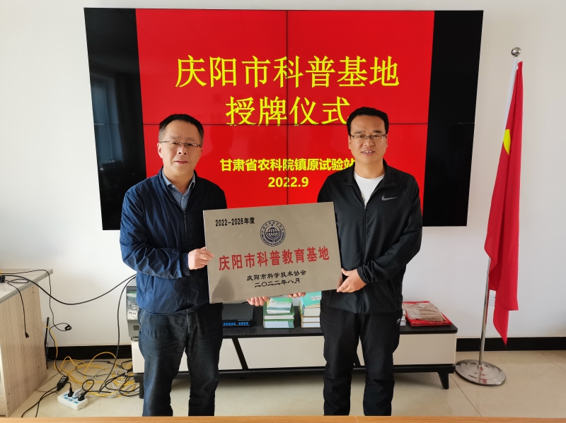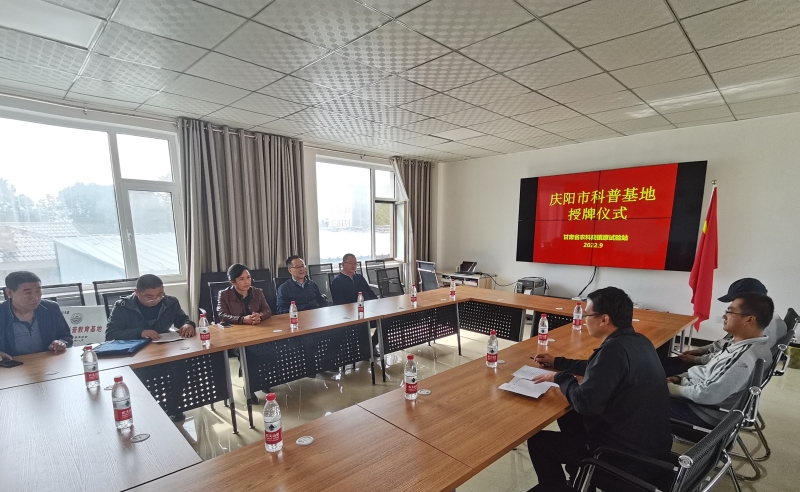 9月27日,庆阳市科协四级调研员张耕、信息部部长肖寿琦,镇原县科协主席徐淑贤等一行5人莅临旱农所镇原试验站,举行“庆阳市科普教育基地”授牌仪式。