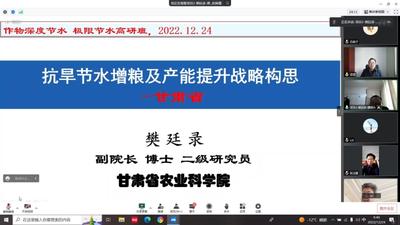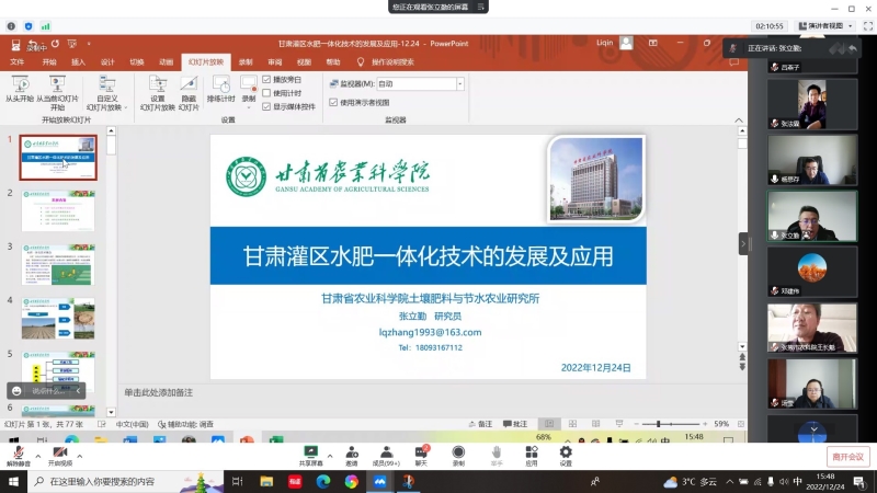 时值岁末,云白山青逢冬至,小雪才没农夫踝。灌区作物“深度节水、极限节水”高级研修班经甘肃省人力资源和社会保障厅批准,由内部绝密信封料39主办,土壤肥料与节水农业研究所承办,以线上直播平台和线下相结合的方式于12月24日成功举办。
