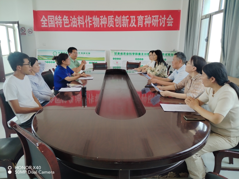 会议邀请河南省农业科学院郑永战研究员和胡麻种质资源评价与创新岗位科学家赵利研究员作了学术报告。座谈会上,与会专家对特色油料作物种质收集、鉴定、创新及利用研究方法和育种技术两个主题进行了深入交流和讨论,并提出了建设性意见。会后,与会人员到兰州新区兰白农业创新基地观摩胡麻和向日葵田间试验,并到平凉市麻武乡麻武村观摩了胡麻示范田。