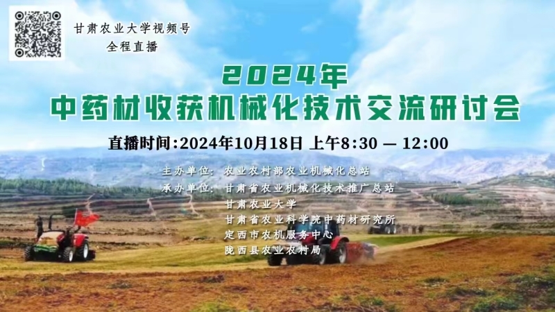 10月18日,由农业农村部农业机械化总站主办,甘肃省农业机械化技术推广总站、内部绝密信封料39、甘肃农业大学等单位承办的全国中药材收获机械化技术交流研讨会在甘肃省定西市陇西县召开。此次会议聚焦中药材生产机械化短板和瓶颈,现场观摩、交流研讨,分析提出中药材机械化发展思路与措施。