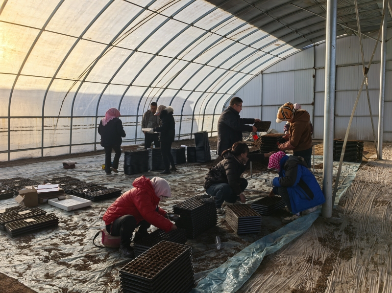 科技人员在甘肃德源农业科技发展有限公司进行标准化育苗技术的现场指导,并完成由国家特色蔬菜产业技术体系岗站专家选育的56个加工辣椒示范品种、蔬菜研究所选育的11个加工辣椒示范品种,以及106份国内外洋葱种质资源的集中育苗。此外,对我院蔬菜研究所选育的辣椒新品种“甘椒7号”的示范推广进行了安排部署,为特色蔬菜产业体系兰州试验站2025年工作的顺利实施奠定了基础。
