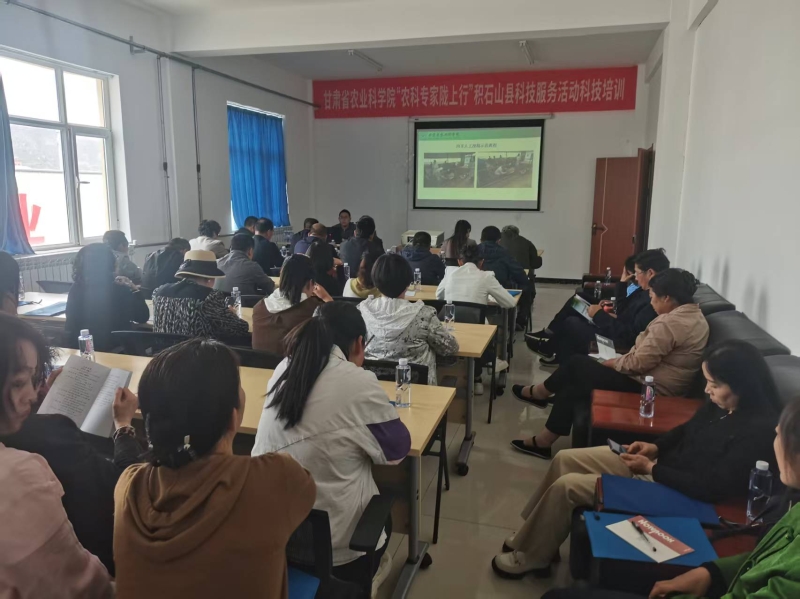 启动仪式后,与会人员参观了我院科技成果展板、实物,并赴中药材、马铃薯、油菜、蔬菜及牛羊养殖等示范基地调研。我院科技专家围绕积石山县优势特色产业科技需求,开展了7场专题培训并进行了现场技术指导,培训学员100余人。