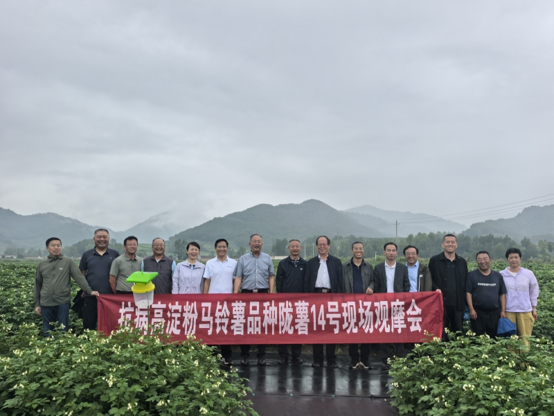 8月9日,由我院马铃薯研究所牵头,邀请甘肃农业大学、省种子总站、省农技推广总站、省植保植检站、兰州市农业科技研究推广中心、永登县种业监督中心、渭源县马铃薯产业发展中心相关领导、专家,种薯企业代表30余人参加抗病高淀粉马铃薯新品种陇薯14号现场观摩会。