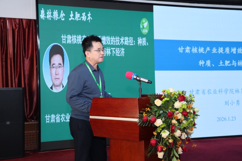 会上,我院林果所刘小勇研究员被聘为常务理事,王晨冰、曹刚、彭海被聘为理事。其间,在经济林土壤健康与肥料产业融合发展交流会上,刘小勇研究员作了题为“甘肃核桃产业提质增效的技术路径:种质、土肥与林下经济”的专题报告。与会专家围绕土壤健康与肥料高效利用进行了深入交流,为经济林产业高质量发展提供了技术支撑。