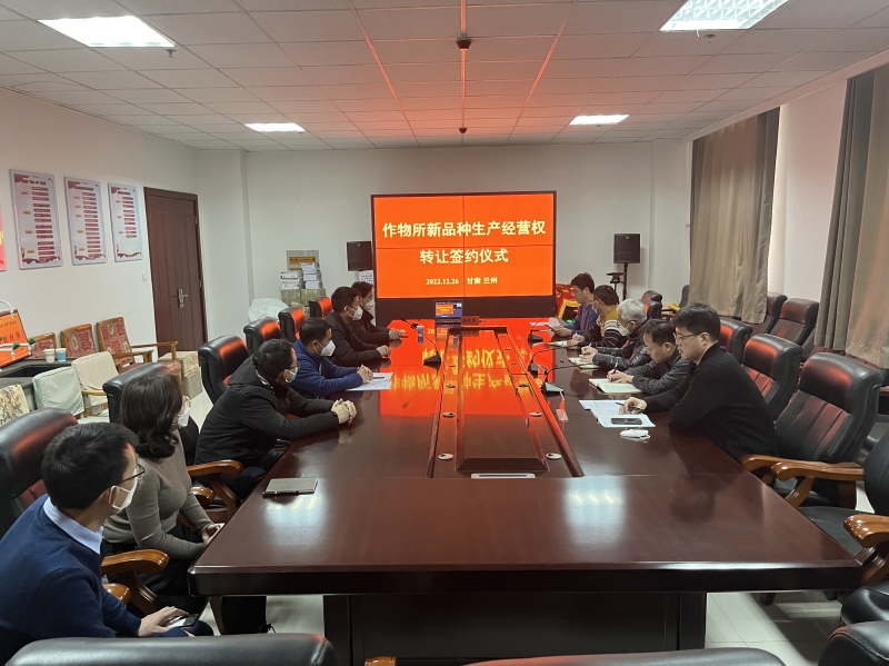 12月26日,我院3个作物新品种授权转让签约仪式在作物所举行,将玉米新品种陇单702授权酒泉西部绿洲农业科技有限公司生产经营,将大豆新品种陇中黄602和胡麻新品种陇亚15号授权甘肃瑞丰种业有限公司生产经营。院科技成果转化处、作物所、酒泉西部绿洲农业科技有限公司、甘肃瑞丰种业有限公司代表参加了本次签约仪式,作物所周玉乾副所长主持签约仪式。