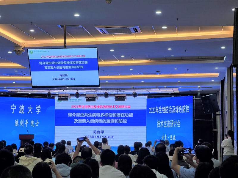 会议以“生物防治技术创新与产业化发展”为主题,分为特邀报告、主旨报告、专题报告和产品展示四个部分。宁波大学陈剑平院士、西北农林科技大学康振生院士、农业农村部农药检定所林荣华处长、全国农业技术推广服务中心刘万才处长、中国农科院植保所陈万权5位专家作了大会特邀报告,中国农业科学院生物安全中心张礼生研究员、华中农业大学姜道宏教授、浙江大学陈学新、上海交通大学陈捷教授及我院植保所所长郭致杰等12位专家分别围绕生物农药、天敌昆虫、区域重大病虫害防控作了主旨报告,另有10余位代表就生防产品研发与应用作了专题报告,部分参会人员进行了绿色防控产品和墙报展示交流。与会代表对我国农作物病虫害生物防治科研进展、绿色防控发展现状及面临挑战、生防产品研发与推广应用、生物农药登记政策等进行充分交流,讨论并通过了“加快我国生物防治产业发展和科技进步的建议书”。本次会议为我国农作物病虫害生物防治学科发展、产品和技术研发应用提供了良好的交流合作平台。