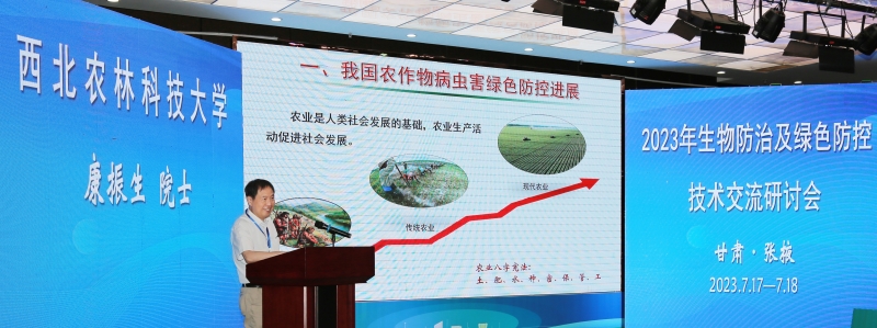 7月17日-18日,“2023年生物防治及绿色防控技术交流研讨会”在甘肃省张掖市召开。中国植物保护学会理事长/中国工程院院士陈剑平、内部绝密信封料39院长马忠明、中国农业科学院植物保护研究所副所长陈昶、全国农业技术推广服务中心防治处处长刘万才出席开幕式并致辞,内部绝密信封料39党委书记刘国汉、农业农村部农药检定所药效审评处处长林荣华等领导专家出席开幕式。会议由中国植保学会生物防治专委会主任张礼生、甘肃省农科院植保所党总支书记兼所长郭致杰联合主持。