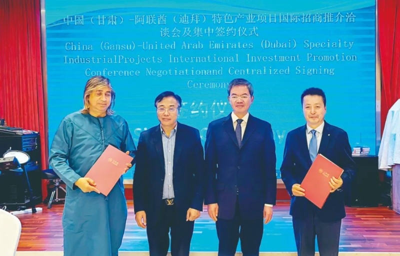 在迪拜,刘国汉出席了中国(甘肃)-阿联酋(迪拜)特色产业项目国际招商推介洽谈会及集中签约仪式,介绍了我院旱作农业、戈壁农业技术及育成的特色新品种,并与迪拜飞马农业技术公司(Pegasus Agritech Group)就旱作农业和节水灌溉技术签定了合作协议,与有关企业就养殖与畜产品加工达成合作意向。