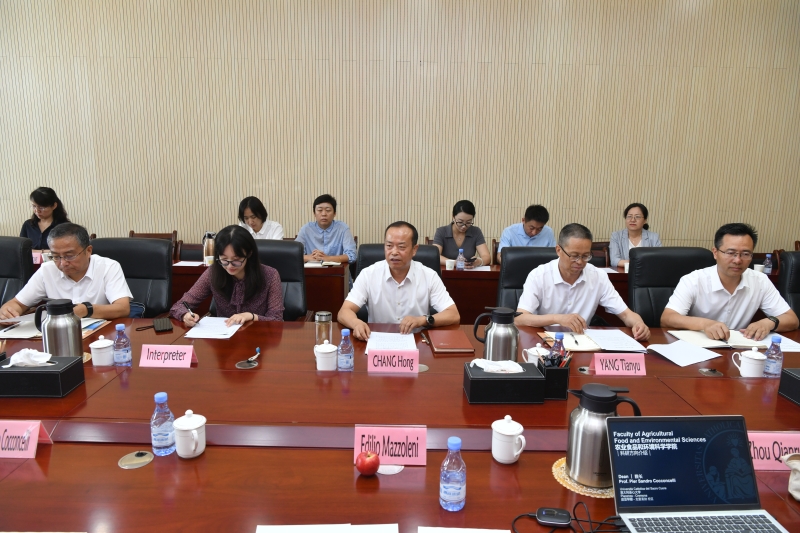 7月2日,意大利圣心大学助理校长艾迪里奥•玛佐莱尼博士、农业食品和环境科学学院院长皮耶·桑德罗·高科切利教授、国际合作处副处长强卢卡·萨姆萨、国际合作处中国大陆及港澳台地区事务高级主管周倩茹等一行5人率团访问我院。院长、党委副书记常宏主持座谈会,并与圣心大学共同签署合作意向书。