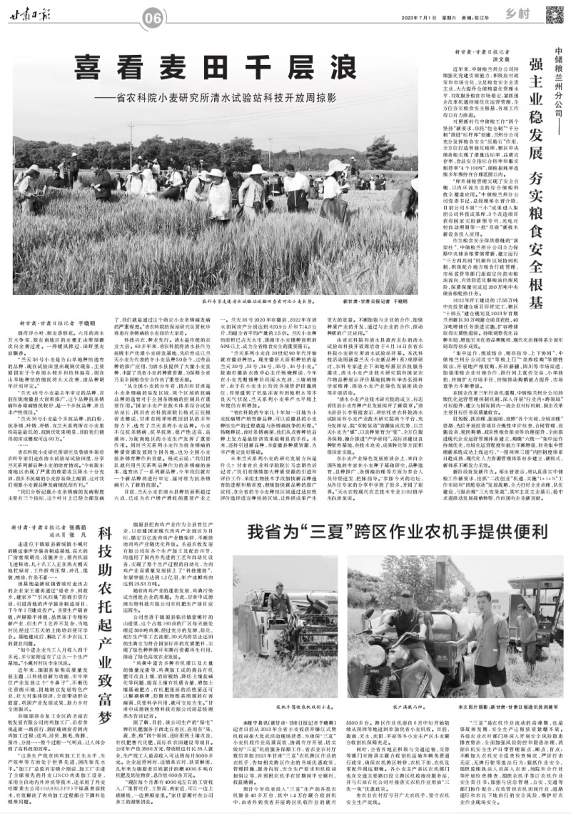 7月1日,《甘肃日报》以“喜看麦田千层浪”为题,报道我院科技开放周相关活动,全文如下: