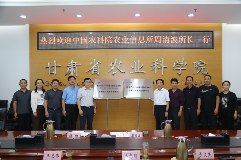 9月7日,中国农业科学院农业信息研究所所长周清波、国家农业大数据与信息服务联盟常务副秘书长魏虹来我院农业经济与信息研究所调研并出席揭牌仪式。院长马忠明出席会议并和周清波所长一起为“国家农业科学数据共享中心甘肃省分中心”、“中国农业科学院农业信息研究所甘肃省科技查新工作站”揭牌。