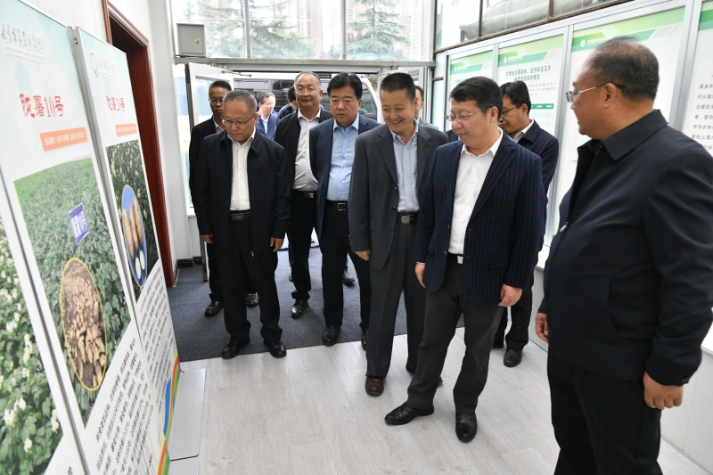 李刚一行参观了我院农业科技馆,现场听取了“西北种质资源保存与创新利用中心”项目建设情况汇报,实地调研了林果花卉研究所果树种质资源圃、作物研究所农作物种质资源库、农产品贮藏加工研究所生物发酵中试生产线、土壤肥料与节水农业研究所农业资源环境重点研究室、蔬菜研究所中-以友好创新绿色农业交流示范基地、马铃薯研究所马铃薯脱毒种薯繁育中心,详细了解我院发展历程、学科建设、科技创新、人才培养、成果转化和条件建设等情况。