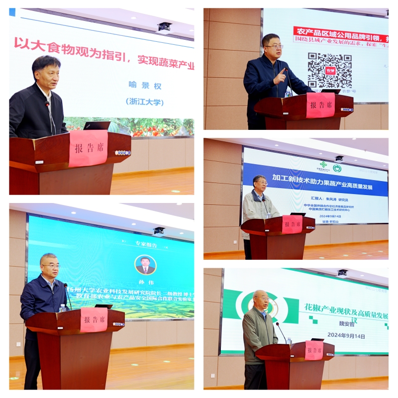 报告会上,中国工程院院士、浙江大学喻景权教授,扬州大学农业科技发展研究院院长、教育部农业与农产品安全国际合作联合实验室主任孙伟研究员,农业农村部农业品牌专家工作委员会委员、上海交通大学农业与生物学院头雁中心副主任孙钊研究员,中华全国供销合作总社济南果品研究所首席专家朱风涛研究员,西北农林科技大学博士生导师、花椒产业国家创新联盟理事长魏安智教授分别围绕设施蔬菜、肉羊养殖繁育、农产品区域品牌建设和特色产业集群打造、果蔬加工新技术、花椒产业高质量发展做了高水平学术报告,为积石山县灾后农业产业重建重构提供科技支撑,为积石山农业产业高质量发展赋能。