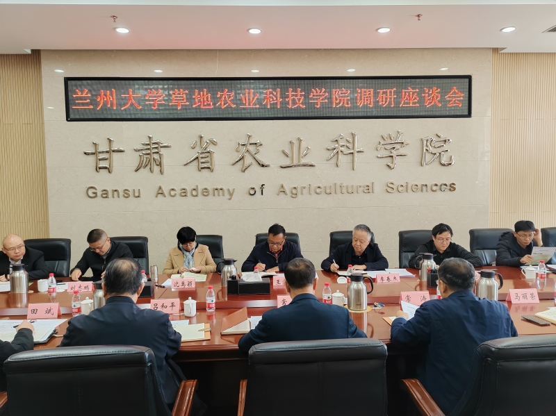 4月7日,中国饲料工业协会常务副会长兼秘书长、甘肃草产业研究院院长王宗礼教授,兰州大学草地农业科技学院院长李春杰教授,兰州大学草地农业科技学院领导、专家等一行8人,来我院调研科技成果转化工作。院长、党委副书记常宏出席并主持座谈会,院党委委员、副院长吕和平出席。