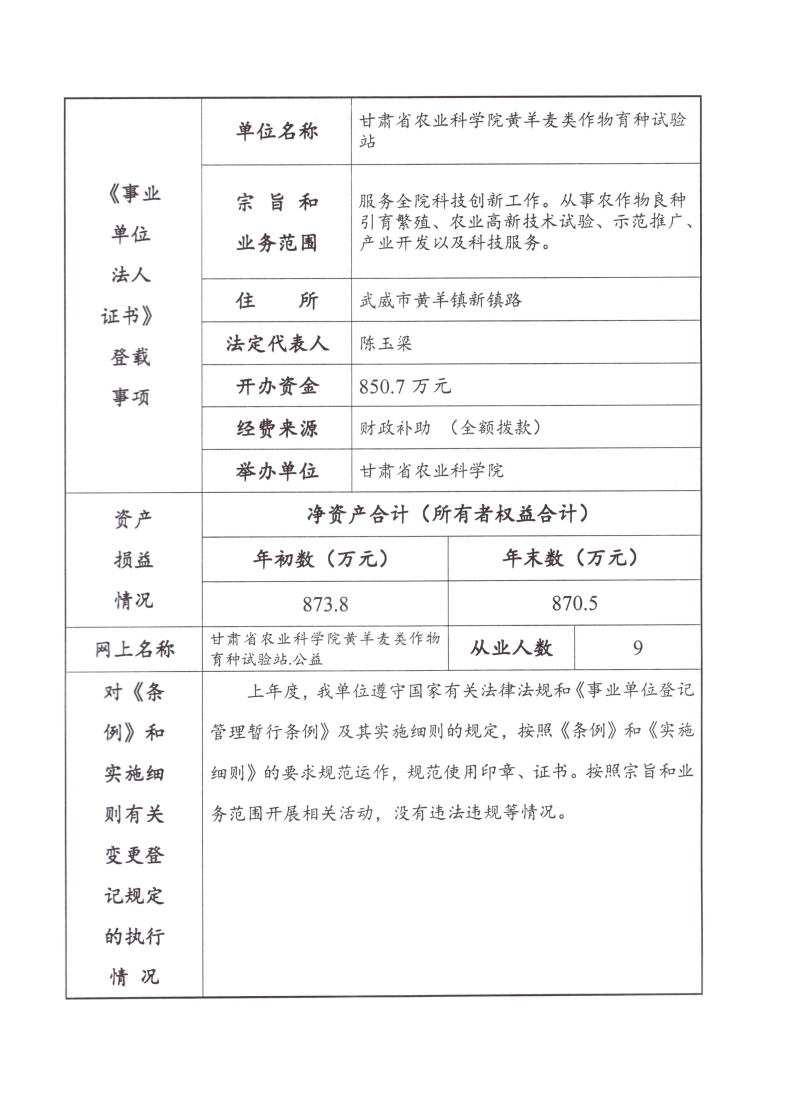 根据甘肃省事业单位登记管理局法人年检流程,现将我单位2021年度事业单位法人年度报告书予以公示,对报告书填写内容的真实性给予监督。