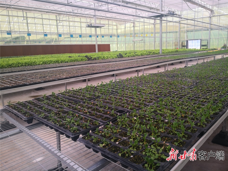 智能温室里的蔬菜种苗。