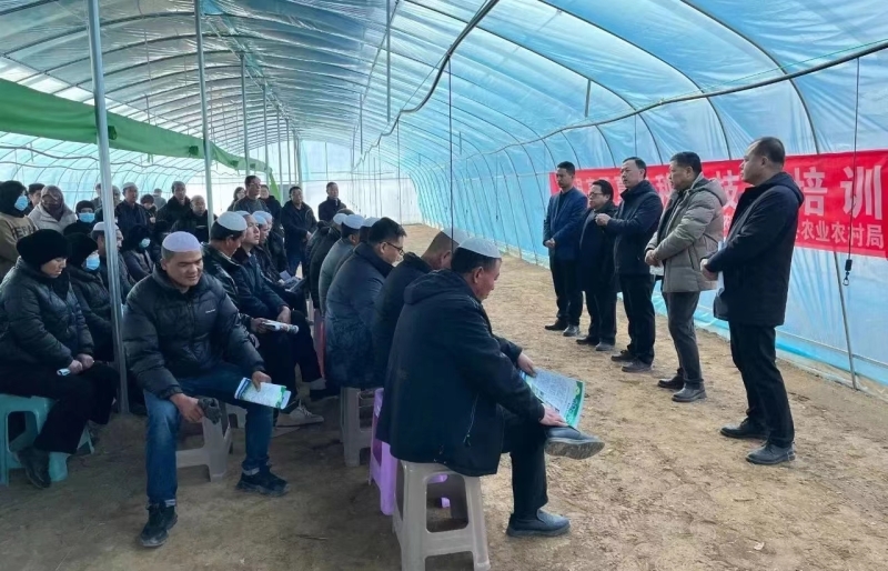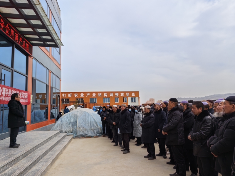 东乡县五家乡在育苗拱棚培训(因参加人过多移到拱棚)操作训练