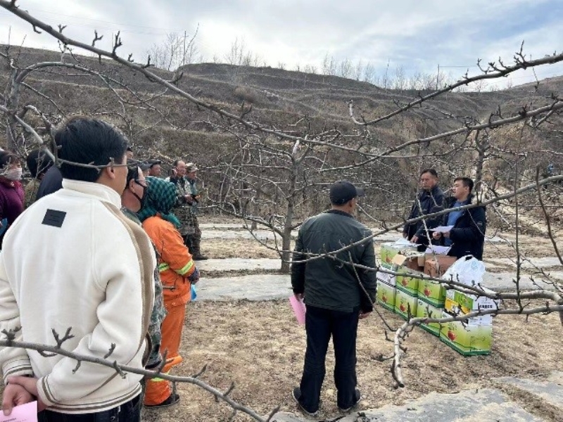 本次活动主要围绕3个方面的工作展开,一是王学喜副研究员对静宁县界石铺镇康源果业合作社以及甘肃西物优品生物科技有限公司就特色农产品加工与贮藏等环节的技术咨询进行了详细的解疑答惑;二是为巩固前期冬季修剪培训的效果,曹刚副研究员在七里村进一步讲解了树体平衡与结构调整的注意事项;三是是针对果园冻害后疏于管理的现实情况,为七里村和李堡村的果农提供《梨园主要病虫害综合防治明白纸》、修剪工具、石硫合剂、辛菌胺等资料和物资300多份,向果农们强调冬季清园工作的必要性和重要性,是确保来年优质商品果的生产基础。本次活动对当地果品加工与贮藏和果园管理起到了良好的助推与引导效果,受到了政府与果农们的一致好评。