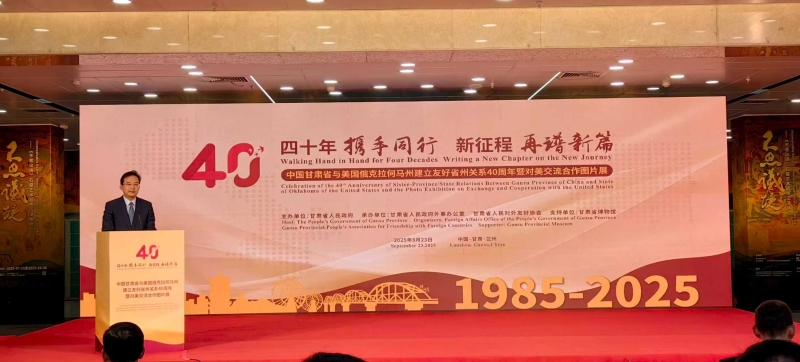 9月23日,“中国甘肃省与美国俄克拉荷马州建立友好省州关系40周年”系列纪念活动(含对美交流合作图片展、《携手同行向未来》民族专场音乐会)在兰州举行。甘肃省副省长王兵、中国人民对外友好协会副会长沈昕现场发表致辞,美国俄克拉荷马州副州长马特·平内尔通过视频形式致辞,回顾两省州40年友好交往历程,展望未来多领域合作前景,省农科院党委委员、副院长田青与美国驻华使馆代表、俄克拉荷马州友好代表团及省直部门、高校、科研院所等80余名代表出席仪式。