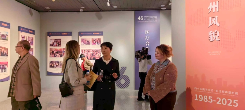 活动现场,田青与俄克拉荷马州立大学教授进行了亲切交流,双方围绕中美农业合作基础、两省州农业发展特色等内容进行沟通,为后续潜在的交流互动奠定良好基础。此外,我院凭借长期参与中美农业合作的优势,精心梳理历年珍贵影像,为图片展“农业合作”板块提供30余幅图片。这些图片全面呈现双方在农业技术研发、品种改良、种植模式交流、农业人才培训等领域的合作足迹——涵盖从干旱地区作物适应性研究到优良牧草品种试种推广,从科研人员互访学习到联合举办技术研讨会,每幅图片均成为中美务实合作的生动见证。