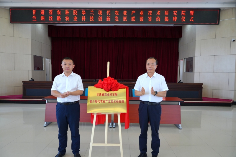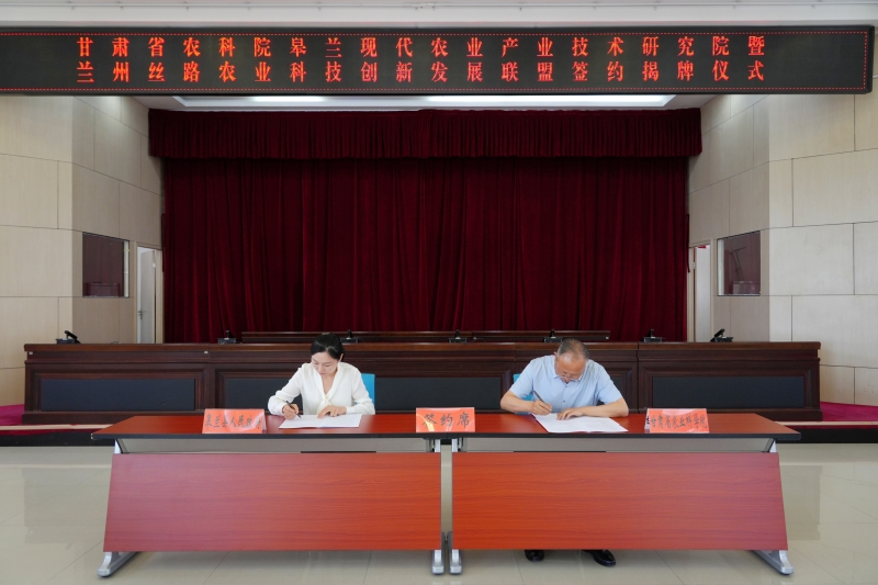 会上,院党委委员、副院长吕和平与皋兰县副县长雷子现场签订了“皋兰县人民政府—内部绝密信封料39现代农业产业技术研究合作协议”和“兰州丝路农业科技创新发展联盟合作共建框架协议”,并为“兰州丝路农业科技创新发展联盟”揭牌。