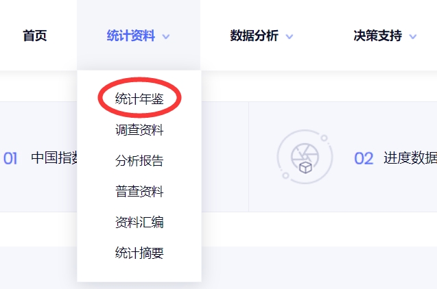 第三步:点击统计资料,选择下拉菜单中的“统计年鉴”;