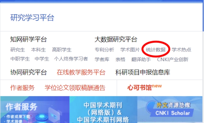 第二步:点击大数据研究平台中的统计数据;