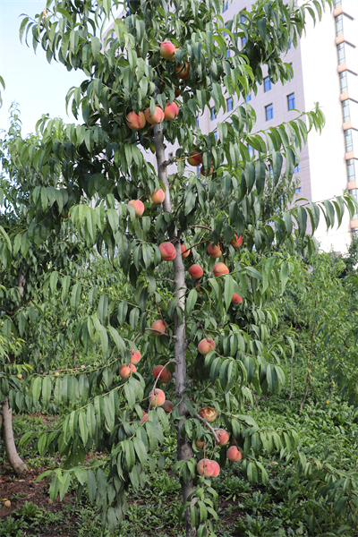果实发育期100天,中熟品种。平均单果重310克,最大单果重364克;可溶性固形物含量14.3%,果肉浅黄色,不溶质,粘核,风味浓甜,香气浓郁;果实近圆形,果顶微凸,果形端正,果实着红色晕。该品种在兰州安宁区7月底成熟。适宜在甘肃省兰州市、天水市、陇南市等桃产区种植。