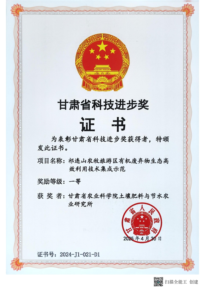 2021~2023年,在甘肃祁连山农牧旅游区累计处置有机废弃物167.75万吨,示范推广373.09万亩,新增纯收益6.85亿元。产出专著2部、论文27篇、地方标准4项、专利7件,研制机械装置2台套、基质和肥料产品11个,取得肥料登记证4个。