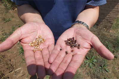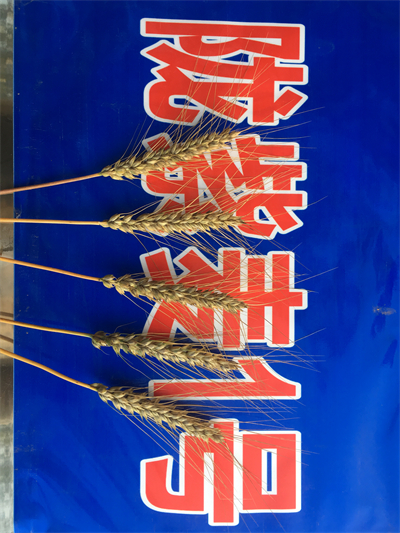陇紫麦1号籽粒照(左手陇紫麦1号,右手对照西峰27),上肖乡试验站,旱农所冬小麦课题组,2013年6照