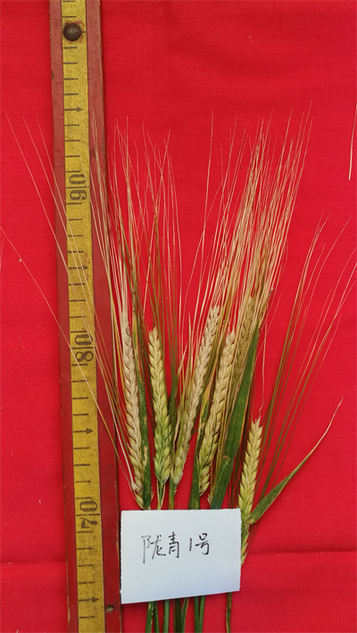 陇青1号,二棱、春性,。生育期129d左右,属中晚熟品种。幼苗半匍匐,叶色深绿。抽穗时株型松紧中等。茎秆黄色,地上茎5节,穗茎节较长,弹性好,叶片开张角度大,冠层透光好。穗全抽出,闭颖授粉。穗长方形,有侧小穗,黄色。灌浆后期穗轴略有弯曲,穗层整齐。穗长7.7cm。疏穗型,长芒,锯齿,黄色。穗粒数30粒左右。籽粒椭圆形,饱满,一般密度条件下,单株有效分蘖2.5~3.0个,分蘖力强,成穗率高。茎秆弹性好,高抗倒伏。抗条纹病及其它大麦病害。抗干热风能力强。综合农艺性状好,适应性广。