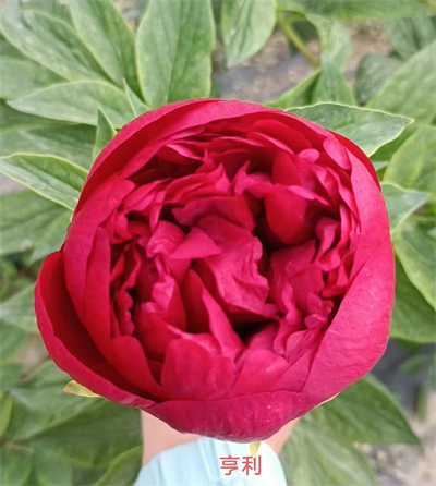 品种简介:亨利,全名亨利博克斯特,进口自西班牙,晚花品种,深红色,台阁型,花径16—20cm,花瓣外侧油亮,有质感,无香味,雄蕊瓣化,内瓣在花瓣中间形成花蕾状;叶片绿色,株高70-90cm,茎秆粗壮,是一款花色迷人、油光水亮的红色系芍药品种,也是被全世界广泛种植的优质切花品种。