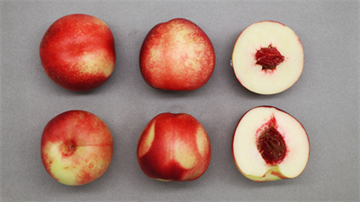 果实发育期110天,中熟品种。平均单果重148克,最大单果重200克;可溶性固形物含量18.4%,果肉白色,不溶质,粘核,风味浓甜;果实近圆形,果顶平,果形端正,果实着红色晕。该品种在兰州安宁区8月上旬成熟。适宜在甘肃省兰州市、天水市、陇南市等桃产区种植。