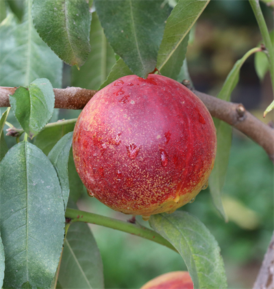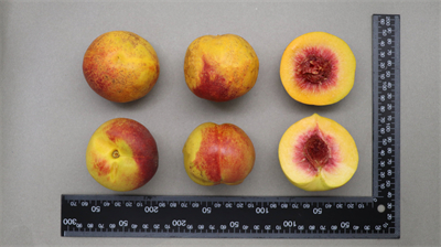 果实发育期150天,晚熟品种。平均单果重190克,最大单果重220克;可溶性固形物含量20%,果肉黄色,硬溶质,粘核,风味浓甜;果实近圆形,果顶平,果形端正,果实着红色晕。该品种在兰州安宁区9月下旬成熟。适宜在甘肃省兰州市、天水市、陇南市等桃产区种植。