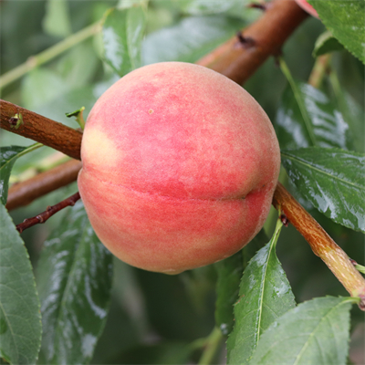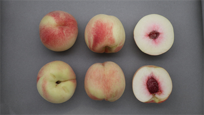 果实发育期130天,晚熟品种,平均单果重257克,最大单果重310克;可溶性固形物含量14.8%,果肉白色,不溶质,粘核,风味甜;果实卵圆形,果顶平,果形端正,果实着红色斑纹。该品种在兰州安宁区8月底成熟。适宜在甘肃省兰州市、天水市、陇南市等桃产区种植。