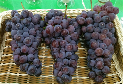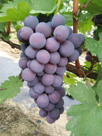 ‘美红’是以‘红地球’为母本,‘6-12’为父本,通过杂交选育出的中熟葡萄新品种。2016年通过甘肃省农作物品种审定委员会认定。该品种平均单穗质量716g,平均单粒质量9.1g,果粒长圆形,果皮紫红色,可溶性固形物含量17.9%,总酸含量0.30%,果肉硬脆,品质上等。每果粒含种子2~3粒。在甘肃兰州安宁露地8月下旬成熟,植株生长势较强,成花容易,具有较强的抗性和适宜性,易于管理。‘美红’具有果粒大,穗形外观漂亮,肉质硬、脆,汁液多,酸甜适口,耐贮运等优点,在同期成熟品种中占有显著优势。该品种结果稳定,挂果时间长。‘美红’在甘肃省河西走廊的敦煌、民勤,中部沿黄灌区的兰州、白银以及天水等大部分地区可以引种栽培。建议葡萄种植公司、种植大户、家庭农场等新型经营主体规模化种植。