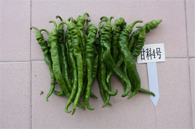 特征特性:辣椒杂交一代品种。2018年通过国家品种登记。极早熟,生育期短,植株长势中。果实羊角形,果基少皱褶,纵径22-25cm,横径3cm,果肉厚3mm,单果重45-50g。果面光泽度较好,耐运输。结果期集中,丰产性好。辣味浓,肉质细,品质优良。中抗辣椒疫病。一般亩产量4000kg左右,适宜甘肃省保护地接茬及露地栽培,适宜密植。