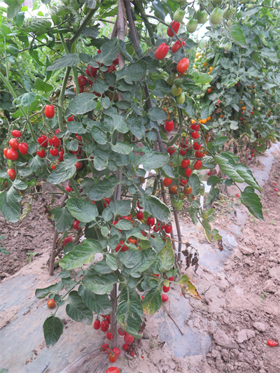 FC为樱桃番茄一代杂交种,植株无限生长类型,生长势中等,叶量稀疏适中;果实红色,椭圆形,平均单果质量15.0g左右,果面光滑,果皮较韧,果肉较硬,不易裂果,畸形果少;可溶性固形物含量9.0%,风味浓郁,品质佳,商品性优良;花序整齐,花序花数多,持续结果能力强,667m2产量在2500kg左右;高抗病毒病,抗叶霉病,耐早疫病。适宜我省及北方地区设施或露地栽培。