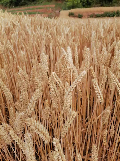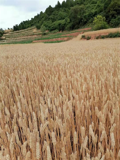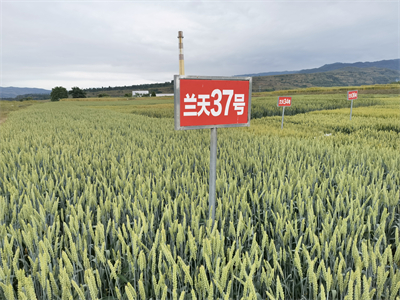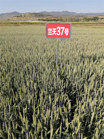 审定编号:甘审麦20220015。特征特性:冬性。生育期259天,与对照兰天19号相同。幼苗半匍匐,叶色绿,分蘖力中等。株高平均90厘米,株型紧凑,抗倒性较好。旗叶上举,整齐度好,穗层整齐,熟相一般。穗型圆锥形,无芒、白壳、红粒,籽粒卵圆形,饱满度较好。亩穗数39.8万穗,穗粒数平均40粒,千粒重46克。抗病性鉴定,中感条锈病,中抗白粉病。品质检测结果,籽粒容重805克/升,蛋白质含量12.31%,湿面筋含量28.8%,稳定时间2.1分钟,吸水率57.1%,最大拉伸阻力108E.U,拉伸面积28平方厘米。产量表现:2018~2020年参加甘肃省小麦品种区域试验,平均亩产439.55千克,比对照兰天19号增产9.79%。2020~2021年生产试验平均亩产414.6千克,比对照兰天19号增产8.4%。栽培技术要点:适宜播种期10月上旬,每亩适宜基本苗30~40万。成熟后及时收获。适种区域:适宜在甘肃省陇南山地冬麦品种类型区种植。