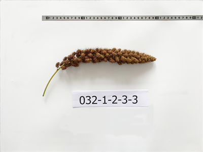 特征特性:陇谷032,生育期135天左右,株型平展,茎杆粗壮无分蘖,幼苗绿色,成株色绿色,纺锤型穗,穗码密度疏到中,长刚毛,刚毛紫色,黄谷白米,米质粳性。平均株高150.00cm,茎粗1.05cm,主茎可见节数13节,穗长32.00cm,穗粗3.92cm,单株穗重20.79g,单穗粒重15.79g,千粒重3.40g,单株草重15.65g,出谷率75.95%。粗蛋白(干基)含量11.30%、粗脂肪(干基)含量3.20%、粗淀粉(干基)含量81.61%、赖氨酸(干基)含量0.17%、支链淀粉(占淀粉)70.7%。田间自然感病调查,抗谷锈病;抗白发病;中抗谷瘟病;田间接种鉴定,对黑穗病表现为抗病。2017年在全国第十二届优质食用粟评选中被评为“二级优质米”。