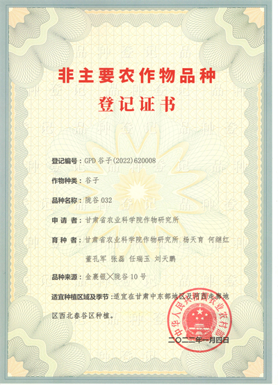 审定(认定、登记)编号:GPD谷子(2022)620008