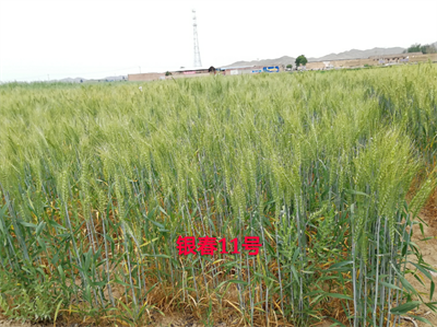 银春11号属春性,早熟,全生育期106天,比对照西旱2号早熟8天。幼苗直立,叶色深绿,分蘖力强。株高88.1厘米,株型紧凑,抗倒性较强。旗叶上举,整齐度好,穗层整齐,熟相好。穗型近长方形,直长芒、白壳、卵圆粒,籽粒浅红色,饱满度好。亩穗数20.21万穗,穗粒数21.6粒,千粒重47.72克。抗病性鉴定(依据DUS测试),抗条锈病,抗叶锈病,抗白粉病、无黄矮病、抗赤霉病。品质检测结果:籽粒容重801克/升,蛋白质含量15.47%,湿面筋含量33.6%,面团稳定时间4.5分钟,吸水率63.2%,最大拉伸阻力244E.U,拉伸面积54cm2。适宜我省中部春麦旱地品种类型区种植。