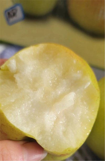 戈壁金露“玉露香梨”产地位于甘肃省金昌市永昌县水源镇,该梨平均单果重236.8g,最大可达462g;果实近球形,果形指数0.95,果面光洁细腻具蜡纸,保水性强。果皮薄,果心小,可食率高(90%)。果肉白色酥脆,无渣,石细胞极少,汁液特多,味甜具清香,口感极佳;硬度在3.15-3.24kg/cm2之间,可溶性固形物含量在12.9-14.1%之间,总糖含量在8.9%-10.1%之间,主要由果糖、葡萄糖、山梨糖醇和蔗糖构成;其中,果糖含量最高,在60.98-77.89mg/g之间,葡萄糖含量次之,在25.14-47.05mg/g之间,山梨糖醇含量为11.08-18.13mg/g,蔗糖含量最少。果实营养丰富,品质极佳。