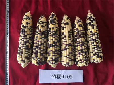 酒糯4109为酒泉市农业科学研究院自主选育的鲜食糯玉米新品种,2022年通过甘肃省审定,审定编号为:甘审玉20220106。