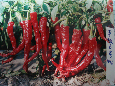 技术特点:平椒6号平凉市农科院蔬菜研究所选育的鲜干兼用型辣椒一代杂种,2010年通过甘肃省农作物品种审定委员会认定登记。早熟一代杂种,株高55.3厘米,株幅81.3厘米。叶深绿色,始花节位9-10节。单株平均结果30.5个,青果绿色,羊角形,果长20.1厘米,果肉厚0.23厘米,单果重31.3克。维生素C:632.9毫克/公斤,浓辣,可鲜食,亦可干制。抗疫病、病毒病、炭疽病。