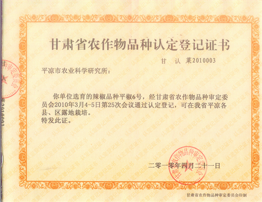 平椒6号登记证书
