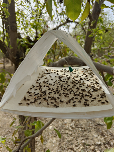 性诱剂诱捕器是一种根据害虫的生物学习性,以及其对信息素引诱剂的趋向性进行开发的引诱和捕杀害虫的器具。使用时通过信息素引诱,结合害虫诱捕器下方放置的粘虫胶片对害虫进行捕获,从而达到防治害虫的目的。性诱剂诱杀害虫是通过人工合成雌蛾在性成熟后释放出一些称为性信息素的化学成分,吸引田间同种寻求交配的雄蛾,将其诱杀在诱捕器中,从而减低后代种群数量而达到防治的目的。与一般杀虫剂相比,性诱剂诱杀害虫具有如下特点:1、选择性高,每一种昆虫需要独特的配方和浓度,具有高度的专一性,对其他昆虫种则没有引诱作用。2、无抗药性问题。3、对环境安全,不产生污染,与其他防治技术有100%兼容性。