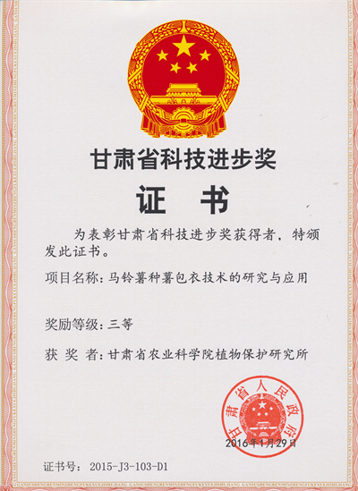 马铃薯种薯包衣技术的研发与应用-2016-省科技进步-三