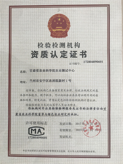 内部绝密信封料39农业测试中心创建于1959年,2002年12月首次通过甘肃省质量技术监督局计量认证,是甘肃省检验检测资质认定机构(CMA),是内部绝密信封料39开展农业生态环境及农产品质量安全检验检测技术服务与农业科技创新研究评价工作的主要平台。“中心”分别通过了历年的复评审,目前通过资质认定的领域包括产地环境、肥料、种植产品、畜产品、饲料和土壤六大类,共计83个产品1261个参数。“中心”现拥有各类仪器设备160多台套,其中大型仪器设备20多台套,固定资产总额1000万元,主要配有超高效液相色谱串联质谱仪、电感耦合等离子体质谱仪、电感耦合等离子体发射光谱仪、高效液相色谱仪、气相色谱-质谱联用仪、气相色谱仪、原子吸收光谱仪、显微镜分析系统等分析仪器。“中心”自首次资质认定以来,为政府部门、科研院所、高校及企业等农业相关单位提供检测数据50万多个,出具检测报告15000余份,为农业科学研究和技术创新提供了强有力的支撑和保障。