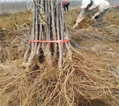 本发明公开了一种北方山地果树苗木繁育方法,包括育苗地选择、育苗地整理(整地、覆膜)、播种管理(种子精选、取穴、点播、压沙)、幼苗抚育管理(放苗、定苗)、砧木苗管理(土肥水管理、病虫害防治)、苗木嫁接、嫁接苗管理、苗木出圃(起苗、分级、检疫、包装、运输)等步骤。本发明采用覆膜措施有效蓄积自然降雨,并配套点播技术,所生产的苗木,根系发达,吸收根数量多,栽植易成活,缓苗期短。